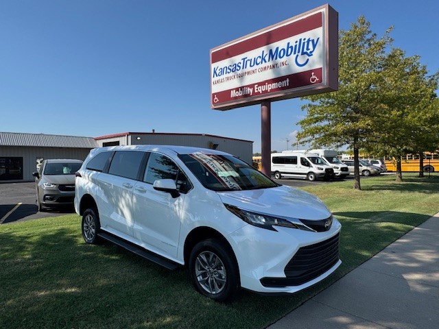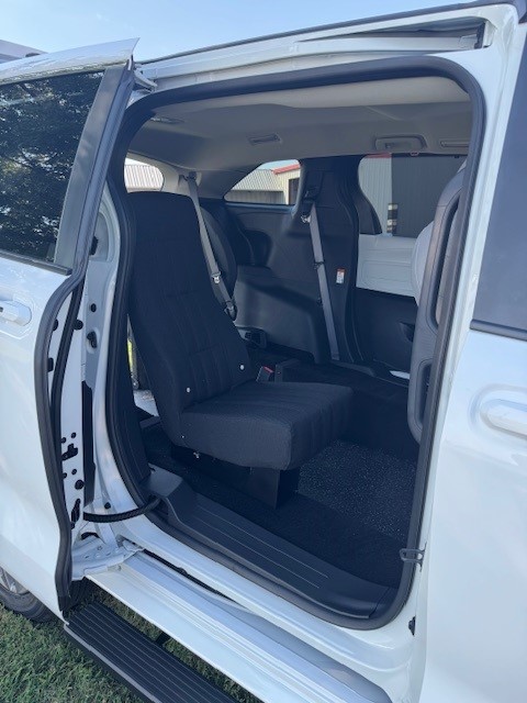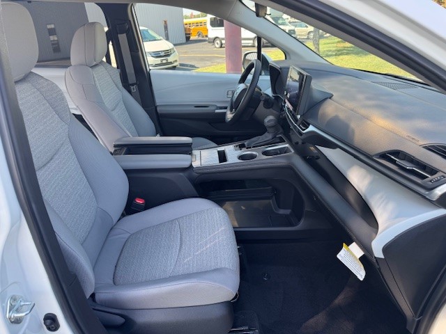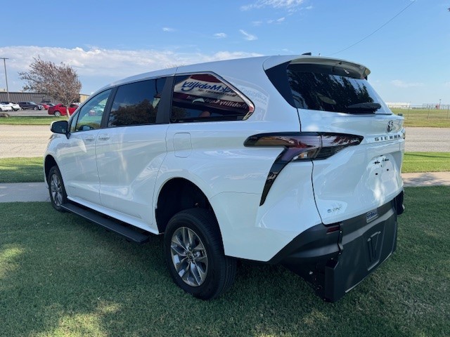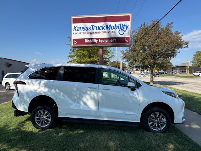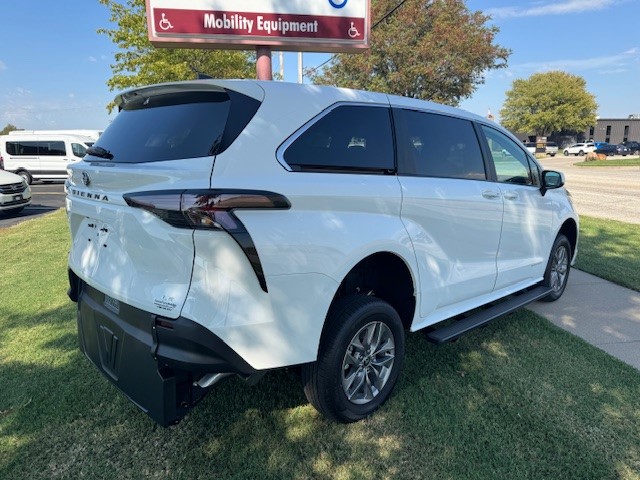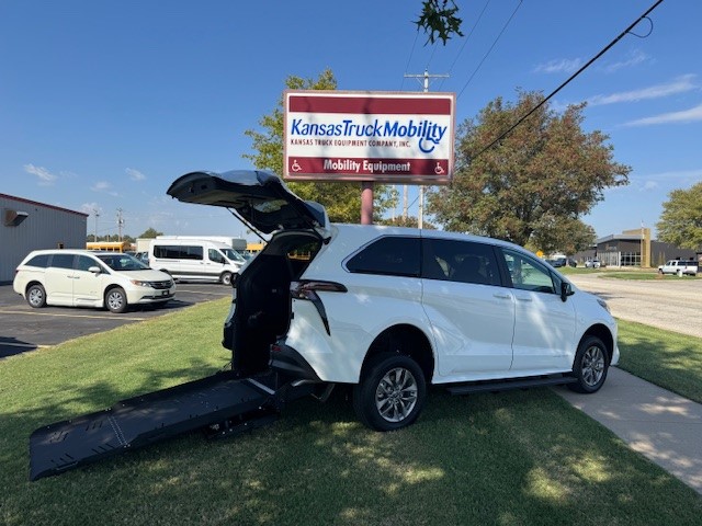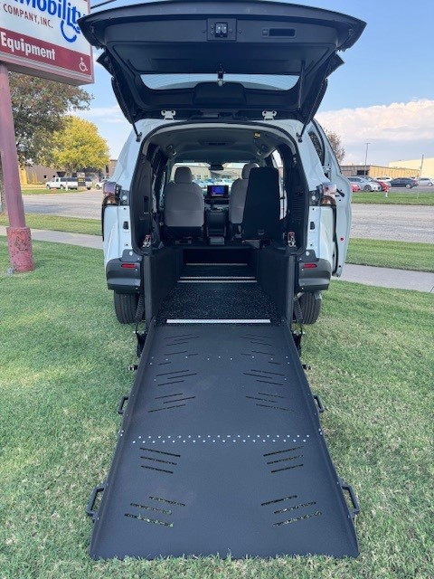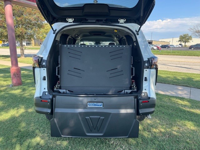 2025 Toyota Sienna LE with Vantage Mobility rear entry wheelchair van conversion. New van with new conversion. Manual folding ramp is 39.5″ inches wide. 57-inch entry height. 1000 LBS Capacity – Altro Flooring – Side Assist Running Boards – Adaptive Cruise Control – Blind Spot Warning – Auto/LED Headlights – Push Button Start – SXM with Apple CarPlay & Android Audio – Back Up Camera – 36 MPG!
