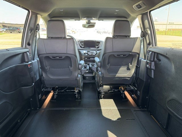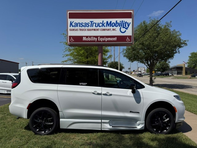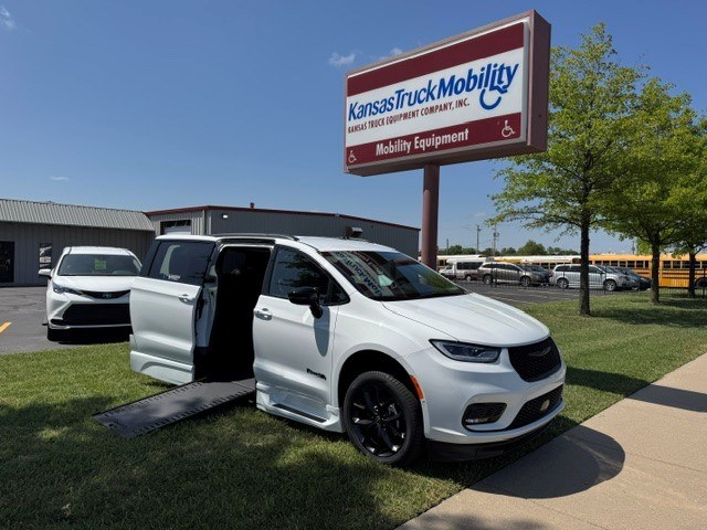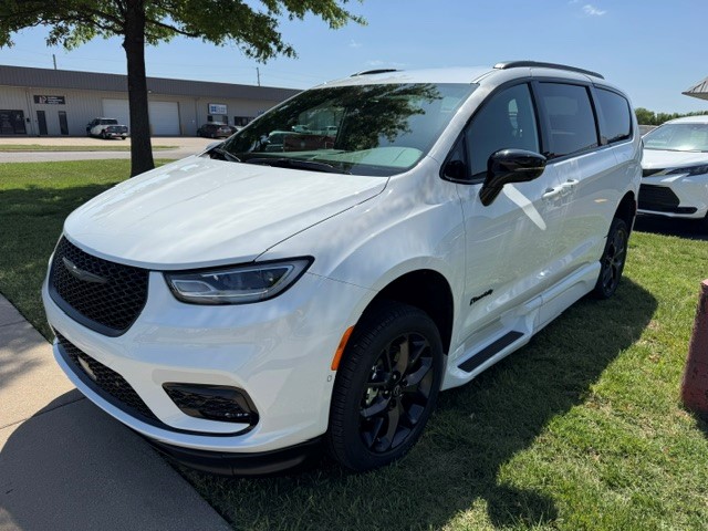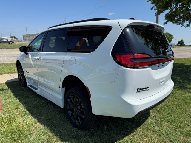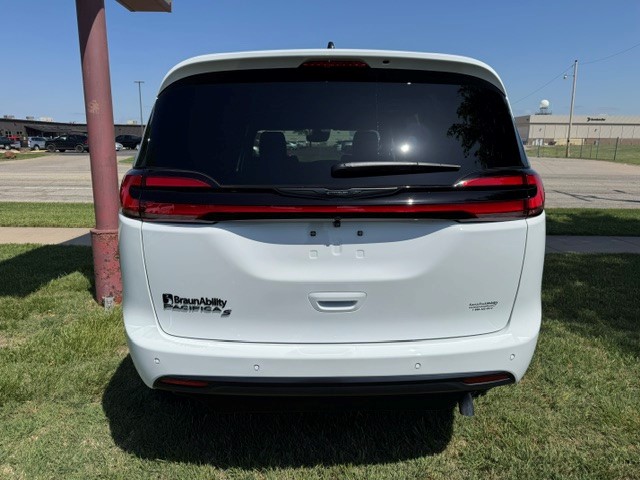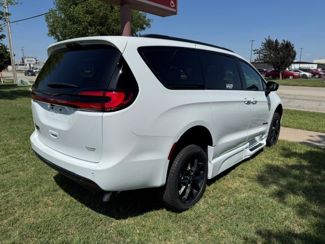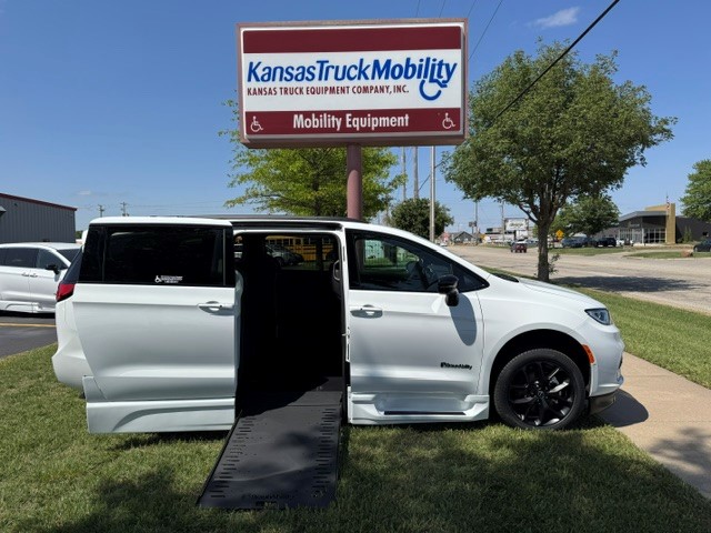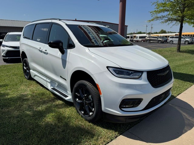 2026 Chrysler Pacifica Touring L “S” with BraunAbility Xi wheelchair van conversion. Bright white exterior / Caprice leather interior. Power in-floor ramp is 32.25 inches wide. 55-inch entry height. Safety Sphere Group with Park Sense – Front and rear park-assist – 360 surround-view camera system – Parallel and perpendicular park-assist with stop – 20″ Foreshadow wheels with Perelli Self-Sealing Tires – Rain Sensing wipers – Remote Start – Apple CarPlay / Android Audio